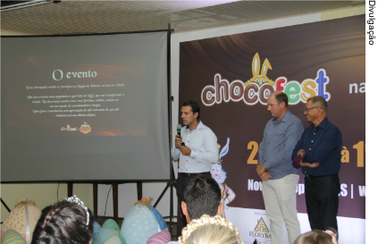 As Meninas Cantoras da Serra Gaúcha, de Nova Petrópolis, abriram a apresentação. O secretário Victor Hugo destacou a importância para o município de receber um evento do porte do Chocofest. "Sou um admirador de Nova Petrópolis, suas ações, seu povo e os evento. Também conheço o trabalho da Rossi & Zorzanello e seus eventos de longa data. Esta união em torno da Páscoa, que é um momento que todos gostamos trará um impacto muito positivo não só para Nova Petrópolis mas para toda a Serra Gaúcha", disse.