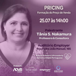 Palestra: Pricing – formação do preço de venda, com Tânia S. NakamuraData: 25 de julho de 2018