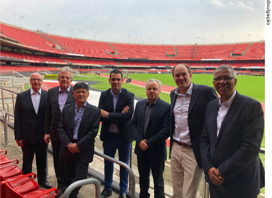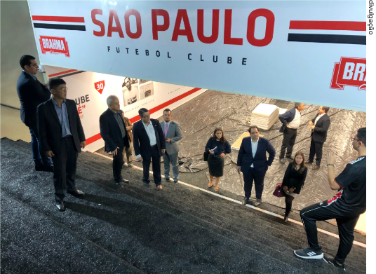 Após o brunch servido no camarote Unyco, um rápido guided tour foi realizado às instalações do complexo Cícero Pompeu de Toledo (Morumbi), incluindo visita aos vestiários e ao campo do maior estádio do Estado de São Paulo e o terceiro maior do país.