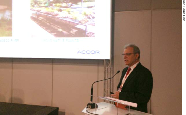 Paulo Alves, gerente geral da Accor para América Latina foi o primeiro a apresentar a empresa e suas ações voltadas ao tema. A rede conta hoje com 173 hotéis em operação, sendo que continua em franca expansão no Brasil no mundo, e tem a sustentabilidade como um dos pilares da companhia. O foco das ações da rede está no controle do consumo de energia e água, usando a ferramenta Open, que se utiliza dos medidores de concessionárias de energia elétrica, gás e água para os hotéis, sempre com o compromisso da redução no consumo desses recursos. Também são monitorados os resíduos desde 2003, com cada gerente de hotel assumindo a responsabilidade pelo melhor manejo e destinação destes. A partir deste controle os hotéis são classificados em um ranking, onde são avaliadas as metas atingidas por cada um. Objetivando a economia dos recursos, a solução é o investimento em novas tecnologias, sempre com a preocupação em não afetar o conforto dos hóspedes.