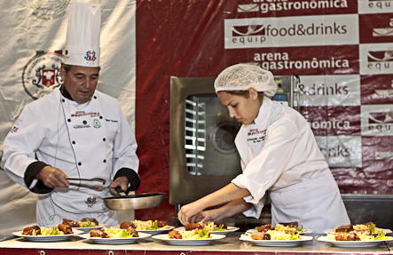 Na Arena, o público também pôde, pelo segundo dia da Aula Show, degustar pratos da alta gastronomia preparados pelos mais renomados chefs. Hoje, se apresentaram na Aula Show Ailton Piovan e Fernando Lima (Federazionje Italiana Couchi – FIC), Sandro Bianchini (Grande Hotel São Pedro), Philippe Soffieti (Buffet França) e Marcelo Magaldi (FIC), Luis Conceição (Novotel Center Norte) e Teresa Guerra (consultora de Gastronomia).