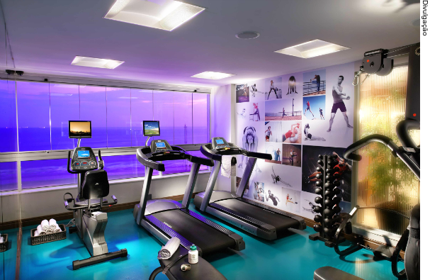 Seu fitness center é bem equipado, aberto todos os dias das 10h às 22h, onde os hóspedes podem realizar exercícios em diferentes aparelhos, como traves multifuncionais de musculação, esteiras e elípticos. Para quem quer relaxar ou fazer praticar natação, a piscina do hotel fica na cobertura e permanece aberta das 6h da manhã à meia-noite.