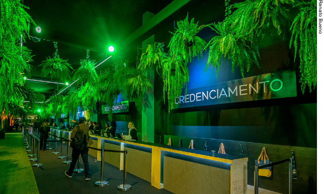 Se no ano passado, a cenografia já pincelava e mostrava traços de uma mistura de tecnologia com natureza, dessa vez, eles assinaram isso como marca registrada. Defendendo um conceito que o próprio slogan do evento sugeriu “gigantes pela própria natureza”, a ambientação dos espaços foi composta por elementos que realmente pudessem lembrar as características da flora brasileira.