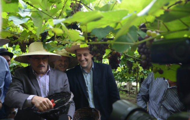 Após a cerimônia, o chefe do executivo estadual realizou o corte simbólico do primeiro cacho de uva da propriedade Strapazzon. Em seguida, Sartori e Pasin fizeram a pisa das uvas, relembrando a forma como os antepassados extraiam o mosto da fruta.