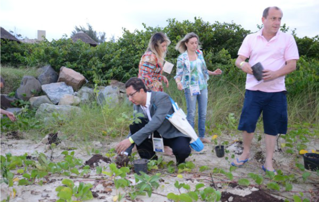 Para neutralizar as emissões de carbono e chamar a atenção dos congressistas para o tema, no final da tarde da sexta-feira (06/03) já foram plantadas 30 mudas de plantas nativas das espécies quaresmeira, erva baleeira e lantana. O supervisor comercial de eventos do Costão do Santinho Resort, William Yamada, conta que “a intenção é reforçar a mata de restinga da praia com plantas originárias da própria região, e assim, preservar as características originais da flora local”.