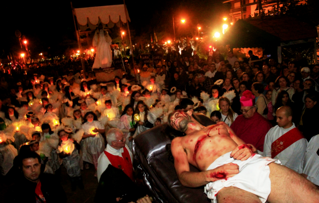 Um público estimado em 20 mil pessoas acompanhou na Sexta-Feira Santa (29), o ponto alto da celebração de Páscoa: a Procissão dos Passos. Principal atividade do Gramado Aleluia – programação religiosa do Chocofest – reuniu mais de 600 participantes na Avenida Borges de Medeiros, percorrendo cerca de um quilômetro, desde o Corpo de Bombeiros, até a Igreja Matriz São Pedro.
