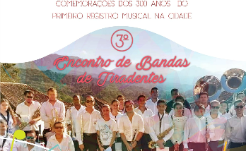 O 3° Encontro de Bandas de Tiradentes acontecerá nos dias 19 e 20 de julho e espera receber cerca de 150 músicos da região. Este ano, o evento será ainda mais especial, pois marca o início das comemorações dos 300 anos do primeiro registro de atividade musical da cidade.