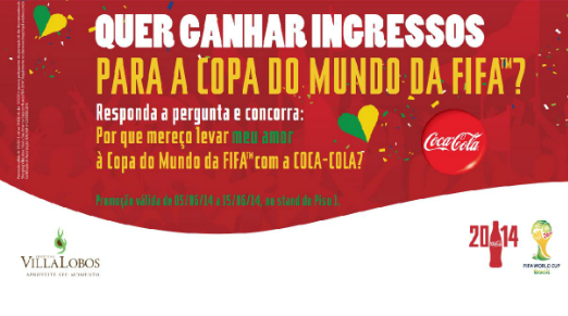 Além dos pares de ingressos, cada casal ganhará dois bonecos do Fuleco, mascote do Mundial. O estande para cadastro fica no 1º piso do Shopping VillaLobos, na Praça de Eventos. Os donos das duas frases mais criativas serão conhecidos no dia 16 de junho.