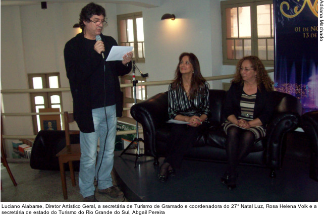 “A comunidade não nos recebeu com estranhamento. Esta é uma chance de somar, de reciprocidade. Vai existir uma troca de experiências entre a classe artística de Porto Alegre e Gramado. Mas eu posso garantir que tudo estará lindo”, revela Alabarse. Cada diretor convidado, a maioria com vários prêmios em artes cênicas no currículo, assumirá um espetáculo. “Podemos crescer em termos de qualidade”, acrescenta a Secretária de Turismo de Gramado e coordenadora do 27° Natal Luz, Rosa Helena Volk.