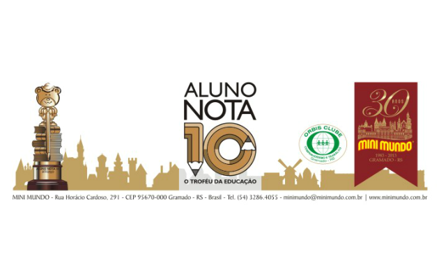 O Aluno Nota 10 é uma promoção que acontece há anos no município baiano de Morro do Chapéu, com o envolvimento de toda a comunidade e com resultados positivos na melhoria do ensino/aprendizagem. O Mini Mundo entrou em contato com os organizadores para receber a orientação, bem como a licença para implantar este programa em nossa cidade, juntamente com o Orbis Clube de Gramado.