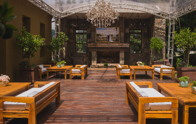 São sete salões, lavabos, camarins, estacionamento e área de desembarque coberto, heliponto, decks (com lareira em pedra basalto), jardim com cenário e infraestrutura funcional de serviço, incluindo gerador próprio. “Nossa área interna para os eventos sociais e corporativos comporta 1 mil pessoas em pé ou de 400 a 600 sentadas no total”, ressalta Marques. A gastronomia é terceirizada.