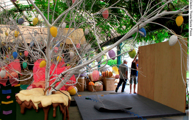 Gramado já está vestida com as cores do Chocofest 2013, que se inicia na próxima quinta-feira (14/03). Neste ano, o destaque é para os elementos inspirados nos costumes germânicos, com árvores secas de galhos brancos retorcidos enfeitadas por ovos coloridos. Somente no Planeta das Guloseimas (Rua Coberta) e Praça Major Nicoletti, serão seis mil metros quadrados de elementos decorativos e cenográficos para encher os olhos de crianças e adultos. Os trabalhos de instalação começaram na segunda-feira (dia 4) e devem ser concluídos até a próxima quarta-feira (13).