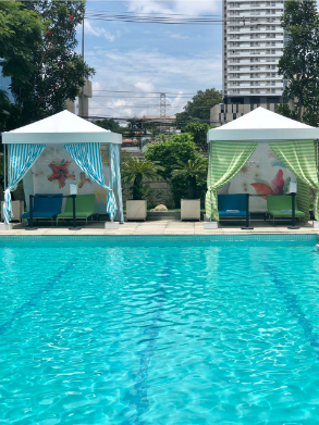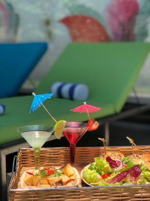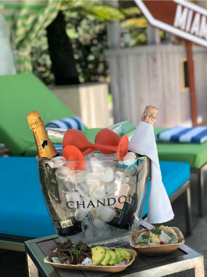 A experiência se inicia na área da piscina, completamente redecorada com cabanas assinadas pela Chandon, cadeiras coloridas e boias de flamingos. O menu, também remodelado, conta com drinks coloridos e refrescantes, ceviches e pokes. Música animada e mimos levam os hóspedes e clientes do day use se sentirem acolhidos no calor vintage de Miami.