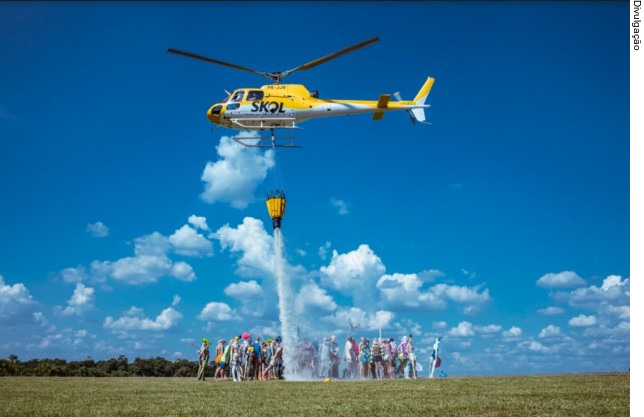 O “HeliSkolpetero” é equipado para jogar uma “tromba d’água” em grande grupos de pessoas e a ação foi gravada apenas para divulgação. O objetivo da marca é desincentivar a aglomeração nesses dias.