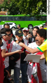 Patrocinadora oficial da CONMEBOL Copa América, a GOL Linhas Aéreas realizou neste domingo uma ação que agitou o pré-jogo de Brasil e Peru antes da partida no entorno do Maracanã, palco da grande decisão. Com uma proposta tentadora feita pelo ator e humorista Rafael Portugal, torcedores peruanos tinham de decidir se trocavam o ingresso da finalíssima por uma viagem para qualquer destino do Brasil com a GOL.