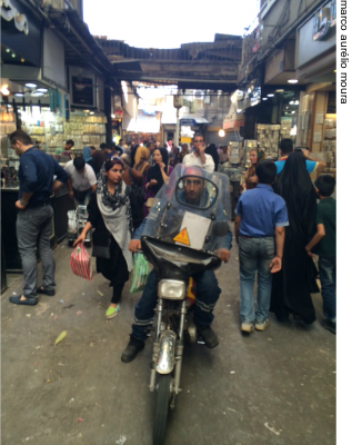 Gran Bazzar de Teerã: grande, antigo e tradicionalEm todas as cidades do Oriente Médio os famosos, tradicionais e lotados bazares são uma grande atração. Muitos são herança de família e passam de pai para filho. Dependendo do tamanho da cidade, consequentemente, do bazar, são eles importantes formadores de opinião política já que fazem parte do coração econômico de uma cidade e, até mesmo, do País. Em Teerã, por exemplo, já houve uma ameaça de greve no