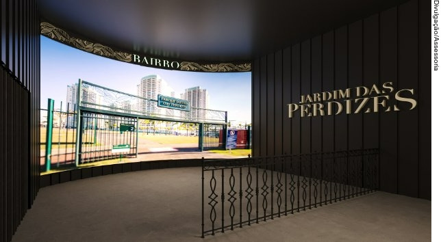 Com cenografia repleta de detalhes que conversam com o ambiente, o bairro e a proposta do empreendimento, a experiência do visitante começa ainda na recepção, com decoração luxuosa, pé direito altíssimo e detalhes como um balcão todo orgânico que traz uma frase de efeito que remete à sensação do que é viver no bairro. Em seguida, o visitante é convidado para um tour rápido, que começa com um túnel escuro instagramável que, de um lado, traz informações importantes sobre a Tecnisa, frases de moradores em destaque, do outro lado informações sobre a Hines, ao fundo quem são os arquitetos que assinam o empreendimento e uma timeline com a história do Jardim das Perdizes.