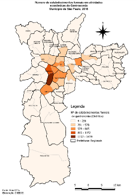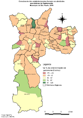 O avanço do setor da gastronomia tem sido marcante em alguns locais da cidade. Em Cachoeirinha, o número de estabelecimentos cresceu 122% (de 70 para 156) entre 2015 e 2016. No mesmo período, Parelheiros evoluiu 62,3% (de 61 para 99) e Raposo Tavares 60,7% (de 61 para 98). Parque do Carmo (59,1%) e Itaquera (46,5%) também tiveram evolução considerável.