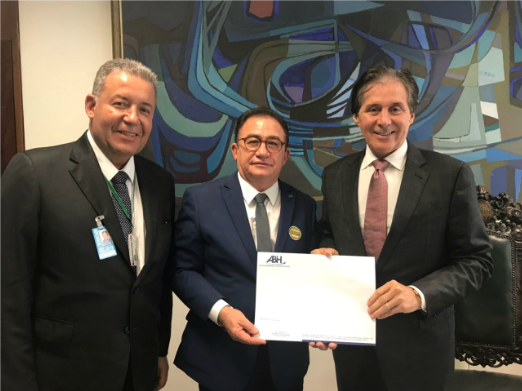 O presidente do Senado, Eunício de Oliviera, recebeu na tarde de hoje (21/3), na presidência da casa, Manoel Linhares, presidente da ABIH Nacional e Alexandre Sampaio, presidente da FBHA e do Conselho Empresarial de Turismo e Hospitalidade da CNC.