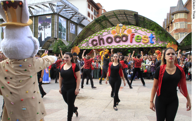 Com cerca de 400 integrantes, o desfile é um dos momentos mais aguardados do Chocofest. Antes mesmo de começar, os Chocoloucos passaram pela avenida com uma “moldura gigante” com o nome do evento, levando o público a tirar fotos com eles. Segundo a coordenadora do desfile, Juliana Zorzanello, uma das preocupações neste ano foi ampliar a participação de crianças com necessidades especiais. “Estamos buscando, assim, fortalecer a inclusão social”, afirma.