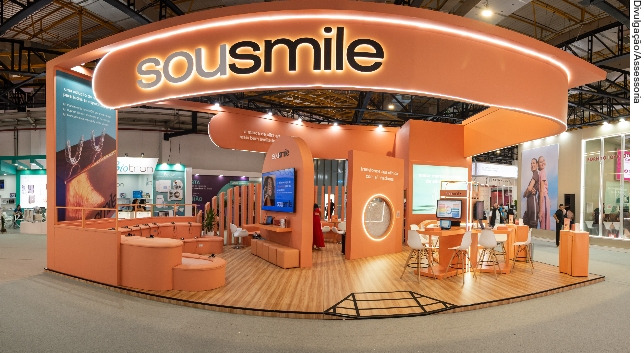 Com formas convidativas e uma arquitetura aberta, sem barreiras físicas, o projeto buscou reforçar o posicionamento de acolhimento e proximidade da SouSmile. O layout foi pensado para garantir fluidez na circulação, conforto e fácil acesso ao público, tornando o estande naturalmente atrativo dentro do pavilhão do evento.
