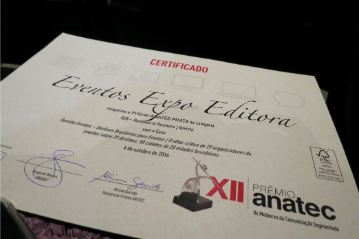 Esta é a segunda vez que a publicação é vencedora do Prêmio Anatec. “Eventos continuam a ser a mola propulsora do turismo brasileiro. Mais de 40 cidades figuraram no último ranking da ICCA, demonstrando a capilaridade da infraestrutura para eventos do Brasil”, explica o Publisher da Revista Eventos, Sergio Junqueira Arantes. “E, hoje comemoramos o reconhecimento da ANATEC ao esforço editorial da Revista Eventos na modelagem e execução do mais amplo diagnóstico da capacidade de atendimento a eventos de cinco dezenas de cidades”, complementa Junqueira.