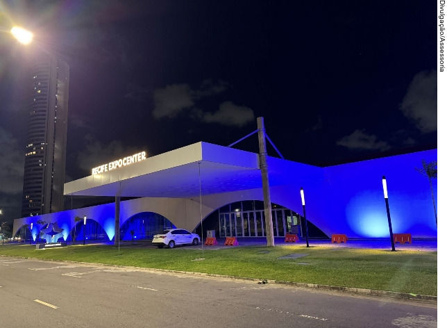 Durante o mês de março, o Recife Expo Center recebe iluminação especial na cor azul escuro em adesão à campanha Março Azul Escuro, dedicada à conscientização sobre o câncer colorretal, um dos tipos de câncer mais incidentes no Brasil e no mundo.