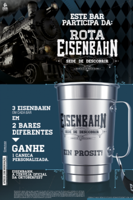 Para ganhar o brinde personalizado com o seu próprio nome, o consumidor deverá acumular dois carimbos de dois bares diferentes no passaporte. Serão ao todo 28 pontos de vendas participantes. Para conquistar os carimbos, o cliente precisará adquirir três cervejas Eisenbahn em cada um dos bares participantes. A retirada e personalização do caneco devem ser feitas no Eisenbahn Biergarten, das 13h às 21h, durante o período da ação.