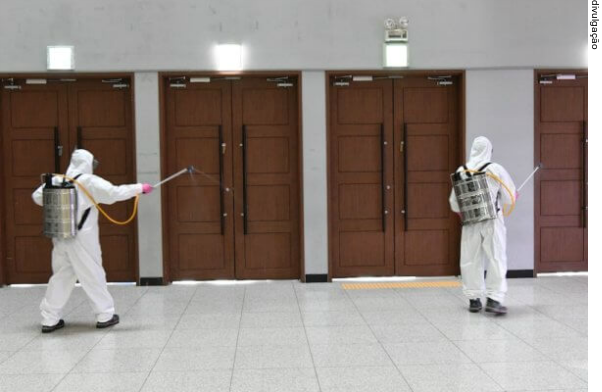– Desinfecção especial, duas vezes ao dia, em todas as entradas, puxadores e banheiros