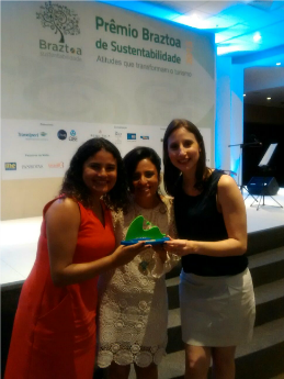 Camila Severgnini e Aline Magalhães da TAM Viagens com Monica Samia (centro), CEO Braztoa