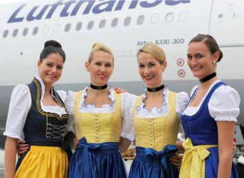 Pela primeira vez, a tripulação da Lufthansa, em seus trajes tradicionais da Baviera, também vai decolar de Munique em voos especiais na Europa. Para marcar o início e o final da Oktoberfest de Munique, uma tripulação da Lufthansa City Line também trocará seu uniforme pelas ‘dirndls’ (saias franzidas). Estes vôos vão sair de Munique para Lyon e Copenhagen em 20 de setembro e para Zagreb e Bremen em 21 de setembro. Em 5 de outubro, a tripulação com sua vestimenta tradicional voará de Munique a Zadar (Croácia) e Genebra.
