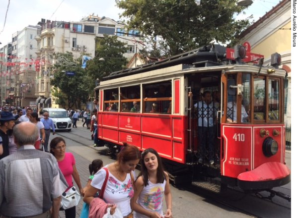 Se vocês acham que a rua 25 de março, em SP, tem muita gente é porque não conhece a rua .... super conhecida e movimentada, que liga Taksim a Túnel. Passam ali mais de 3 milhões de pessoas por dia. Isto mesmo. Não se assuste, pois trata se de uma avenida bem larga, e se estiver cansado tem um bonde que sobe e desce ela a todo momento.