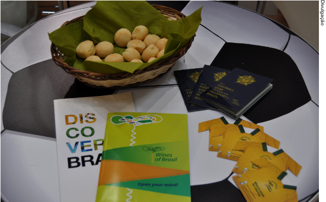 A ação entitulada Be a Football Star and Stamp Your Passport to Brazil consiste em estimular os visitantes a provarem ao menos um vinho de cada vinícola expositora, totalizando 9 rótulos. Quanto mais forem degustados, mais pontos serão marcados por meio de um carimbo em um bloco de anotações no formato de um passaporte. Ao final das degustações, o participante passa para a etapa final do jogo, fazendo chutes a gol em um aplicativo para iPad conectado a uma TV instalados no local. Cada gol marcado rende pontos que serão somados aos acumulados no passaporte. Ao final de cada um dos três dias da feira, o visitante com a maior pontuação leva o prêmio. Para conferirem o resultado, os participantes devem acessar a página do Wines of Brasil, no facebook (www.facebook.com/brazilianwines).